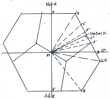 C"= 20° 12' 19" | γ" = <C"MD = "Nabel" - <C"MN